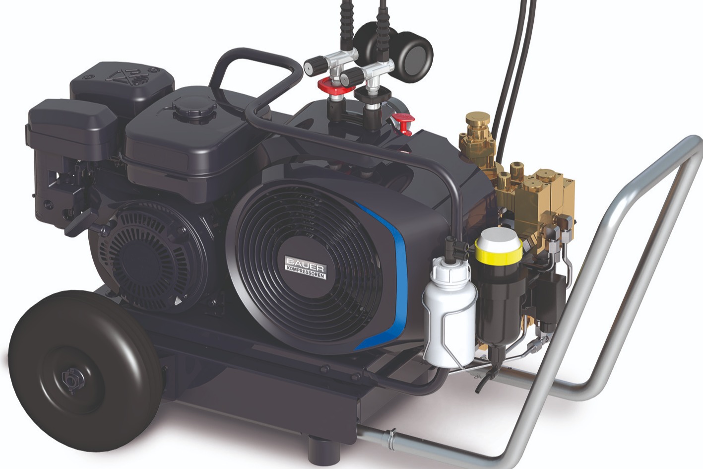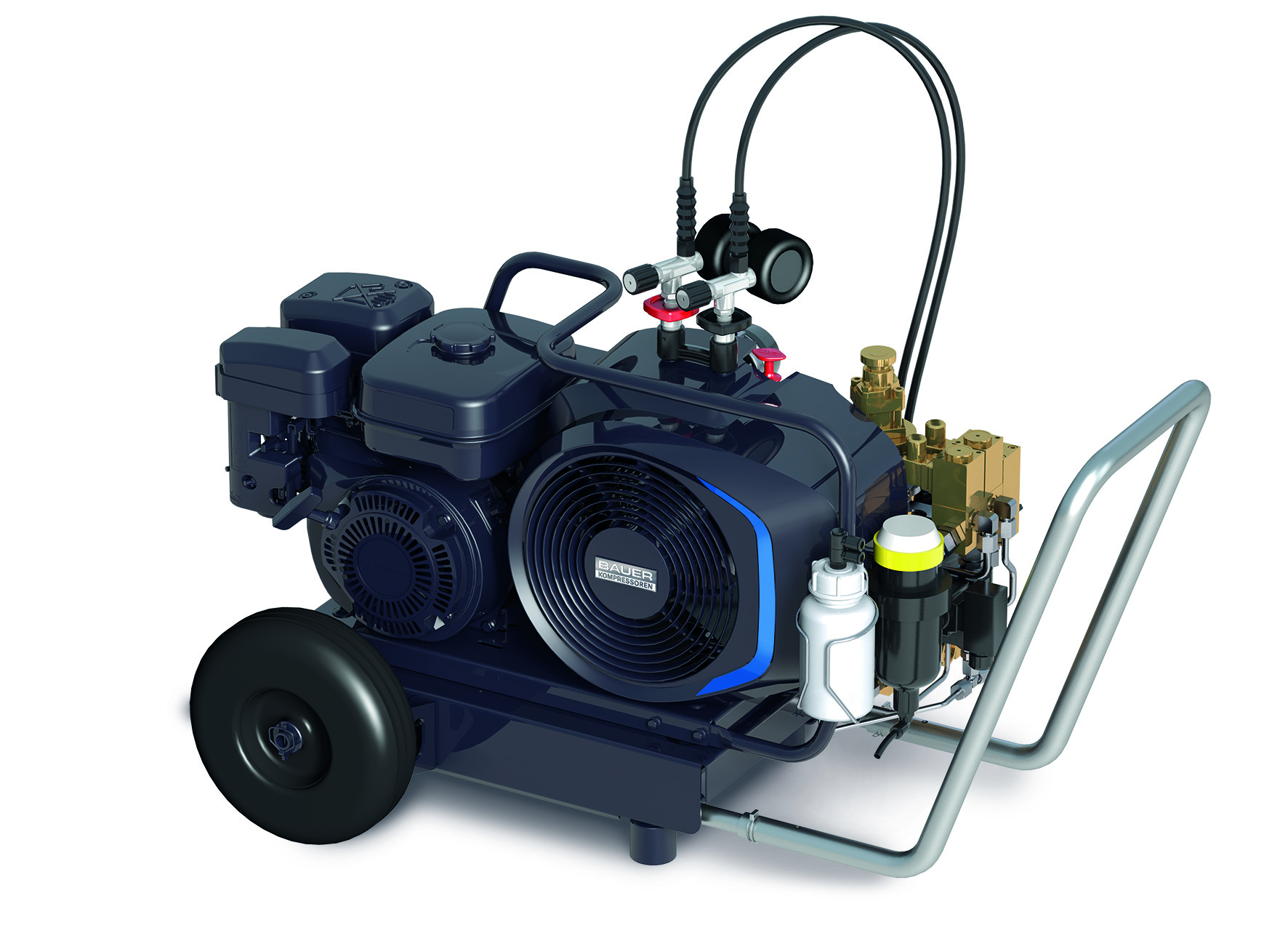 Dimensions on a very small scale and sophisticated technology make our most compact mobile breathing air compressor ideal for shipping, as a diving compressor, in respiratory applications, and as a compressor for paintball and sport shooting.